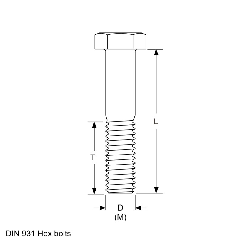 Tiêu chuẩn: DIN 931 (ren lửng)