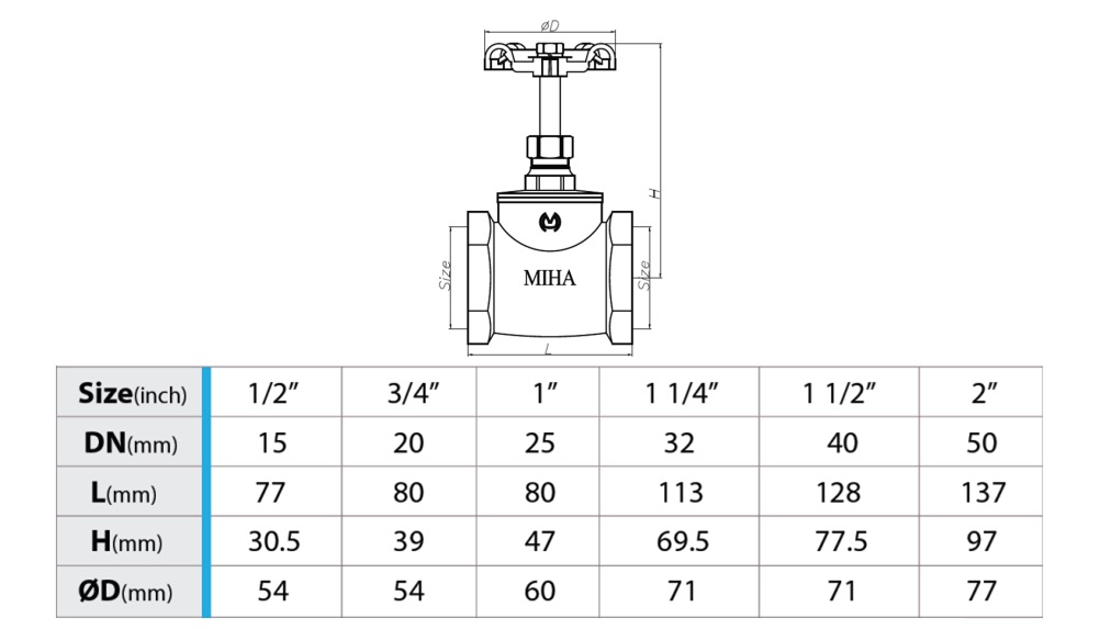 Size: 1/2'' - 2'' (DN15 - DN50)